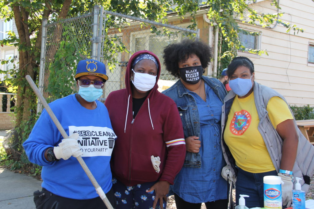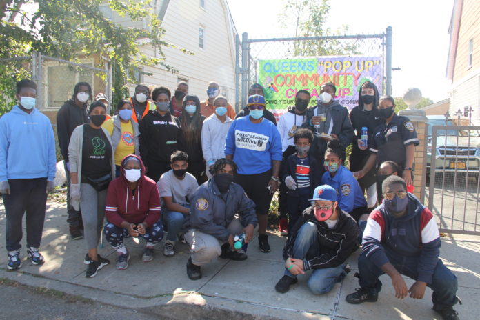 SEQ Clean Up lead a volunteer effort at The Garden Of Resilience on Saturday, October 3, 2020 in Springfield Gardens. The clean up initiative assisted the garden in finishing an art project and cleaning the surrounding area. The art  project is supported by Cultural Immigrant Initiative.  The New York Police Explorers came out in force and volunteered in the garden. Dawn Kelly of The Nourish Spot served as a sponsor and provided a special “cold pressed apple ginger natural juice blend”  beverage, “a nutritious salad chock full of anti-oxidant  organic veggies,” compost for the garden and introduced the emerging catering business “of Sebastian Roseway called” Bash Eats. Bash Eats provided a healthy hot food for all of the volunteers.