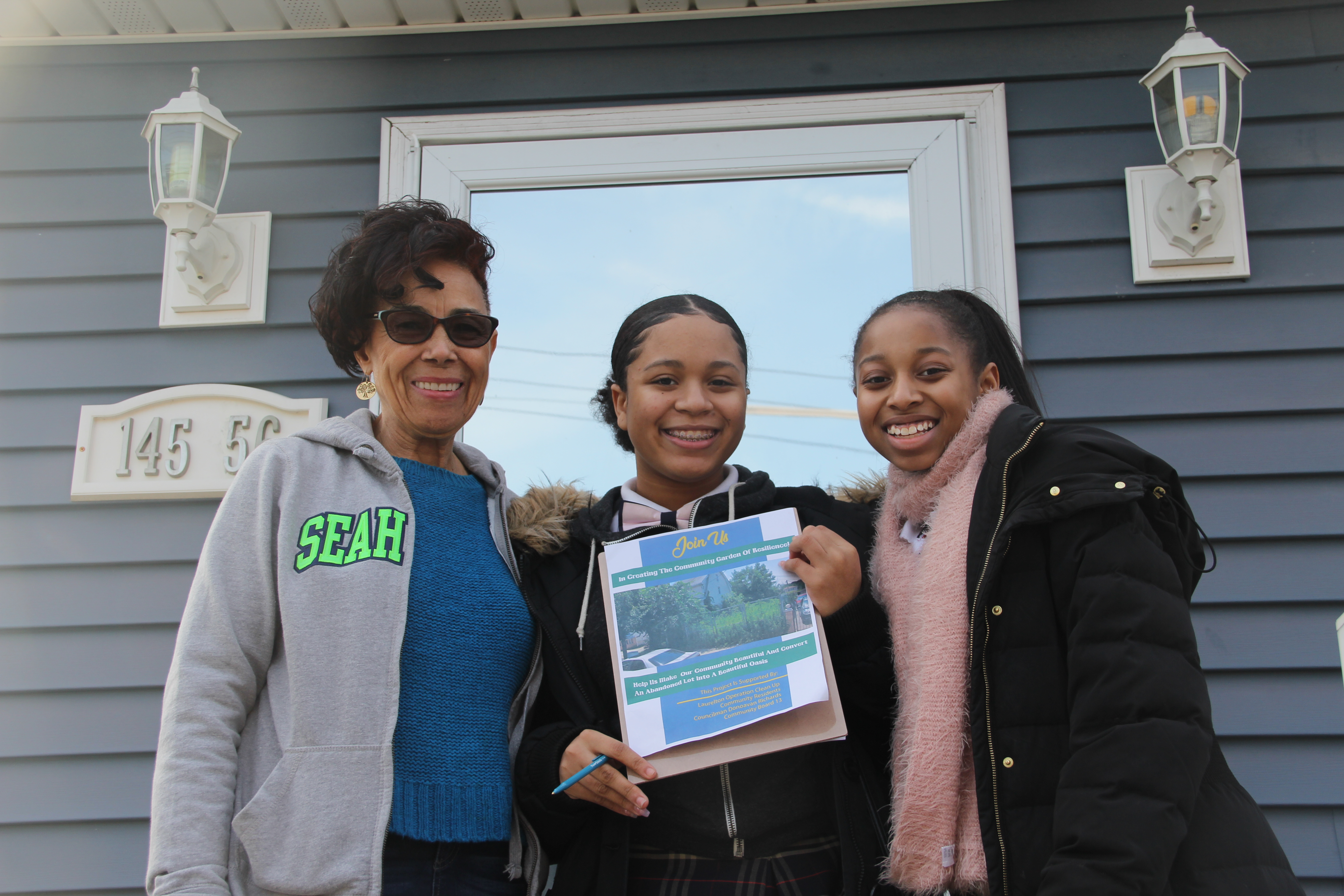 The Linden SDA Community Outreach Team canvassed the block of our future community garden. The Linden SDA Community Outreach team are 8th graders fulfilling their community service hours for graduation. In partnership with the STEAM for Social Change Program at their school, students prepared for three weeks to engage with local community residents on the importance of signing a petition to ensure the garden comes to fruition. The STEAM for Social Change Program is a program designed by DIVAS for Social Justice and currently runs programming in three schools in Laurelton. The Linden SDA Community Outreach team concentrated on canvassing the block of the abandoned lot where the garden will be. The community outreach team successfully signed up 16 neighbors to actively participate in the community garden. The Linden SDA Community Outreach team will be next by the LIRR Laurelton station cleaning up garbage and debris by the local murals and recruiting more potential members for the Community Garden of Resilience.