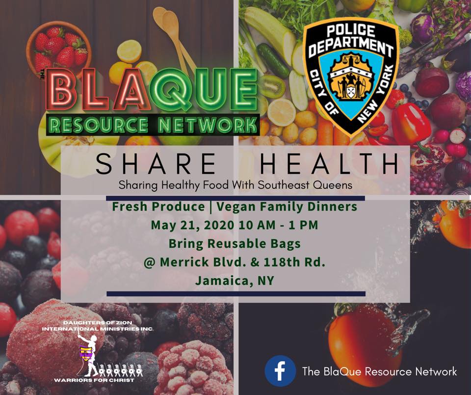 Southeast Queens residents are coming together to serve our community in providing solutions to the issue of food insecurity before and beyond COVID-19. For starters, the BLAQUE Resource Network will host a food donation drive receiving 3000 pounds of food to donate to the Southeast Queens community. The organization will be providing fresh produce and vegan family dinners on May 21, 2020 from 10AM-1PM at 118th Rd. The vegan family dinners are being prepared with love by the following local businesses: